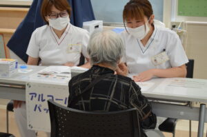 ご来場者様には各コーナーを体験していただきました。日頃する事の無い身体測定やアルコール適応性テストに興味津々の様子でした。